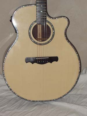 -Custom voiced Sitka Spruce top w/ abalone rosette.
