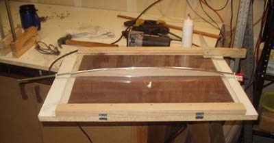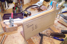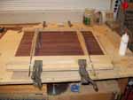 The same jig that guides the router for the backstrip is used to glue the backstrip and back reinforcement brace.