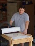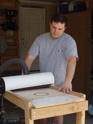 Final thinning of a top on the drum sander