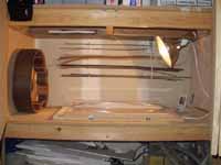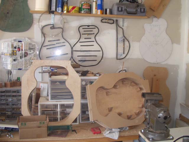 My shop is located in the southern Oregon city of Grants Pass. Knight Guitars is a "one-man" operation in a small, streamlined shop. Side-bending, neck carving, and finishing all have their carefully planned place in my shop. Below are some pictures to give you a little insight into the process that goes on in my shop.