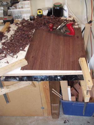 Initial thinning of wood is done by hand plane and scraper